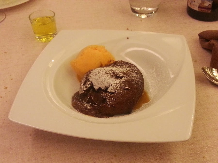 De postre ellos pidieron hojaldre templado de manzana con helado de vainilla y para mi coulant de chocolate negro con relleno de dulce de leche, los postres impresionantes.