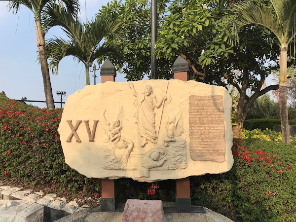 Al llegar observarás que hay escalinatas, exactamente son 166 escalones donde se aprecian las 15 estaciones del vía crucis de Jesús de Nazareth, las obras fueron hechas en resina y fibra de vidrio (dan la apariencia de rocas) por las artistas Jorge Muñoz y Hans San Andrés Tábara.
