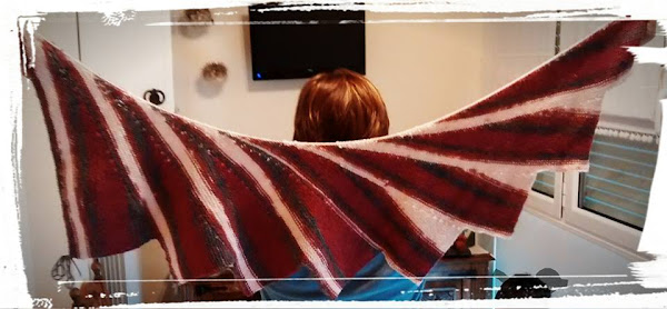 Otro chal de triángulos. Esta vez se trata de chal de Maite. Te ha quedado precioso lo pongo con la colección