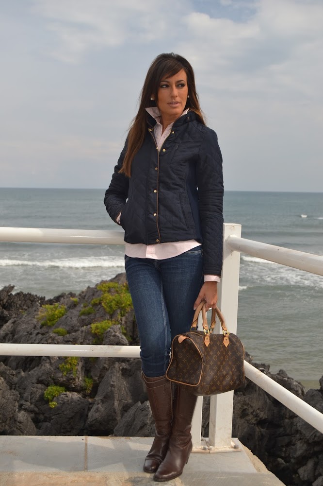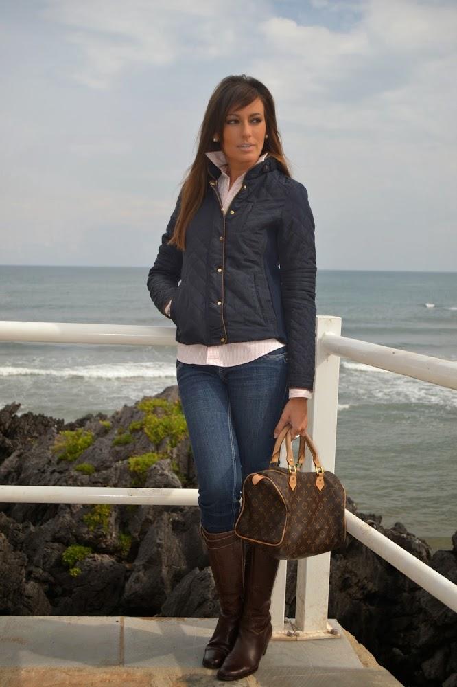 A la hora de combinarlo, buscaba algo clásico, pero con un punto casual y pensé que, tal vez, mi cazadora azul marino tipo husky de Sheinside (tremendamente reconocible por su acolchado), que todavía no había tenido ocasión de mostraros, me vendría de perlas, pues no se me ocurre un mejor ejemplo del sport entendido como elegante que el siempre cómodo, versátil y ligero husky.