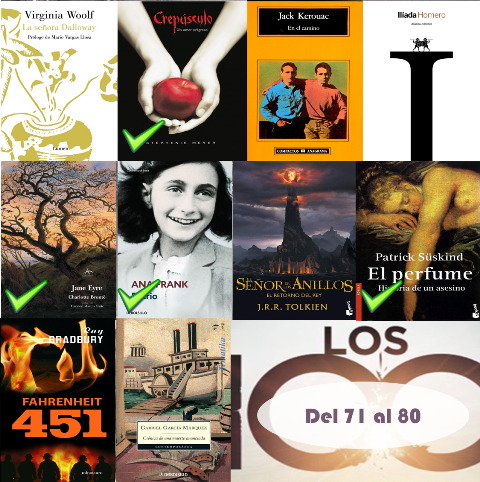 Bueno, no está mal, mirando el vaso medio lleno veo que me ya me tenía leídos 60 de los 100 mejores libros de todos los tiempos!