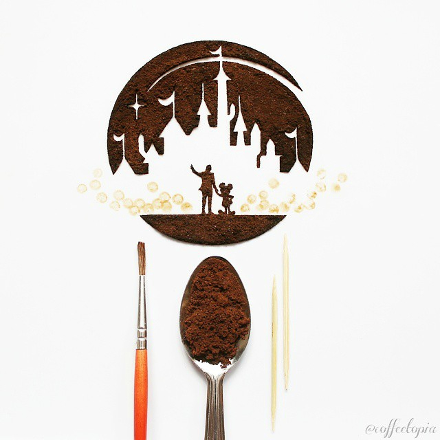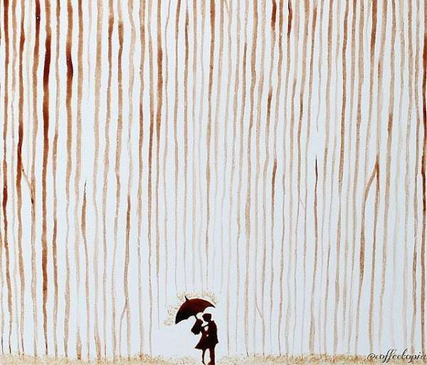 Os dejo algunas de sus ilustraciones realizadas únicamente a base de café. Un trabajo que además de poder contemplarse con la vista se puede deleitar con otros sentidos como el olfato.