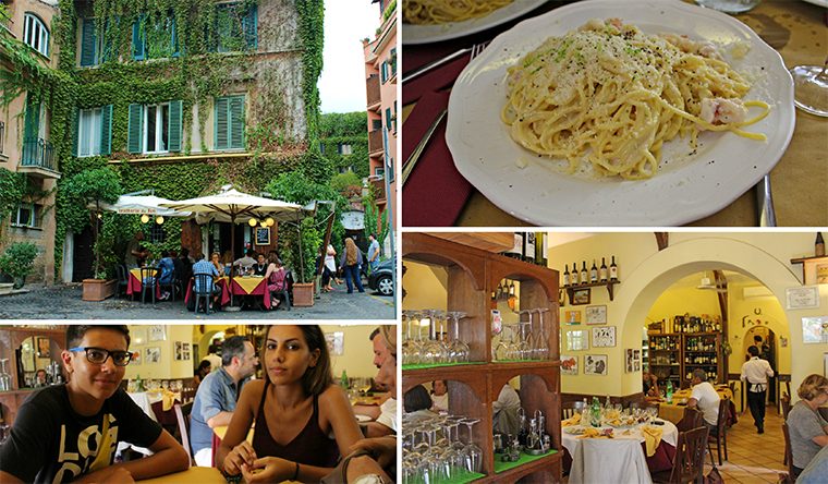 Nos recomendaron cualquier trattoria del Trastevere para comer pasta. Nos dijeron que en la mayoría de lugares es casera y a buen precio y así fue como descubrimos Trattoria da Teo, un lugar que nos encantó.
