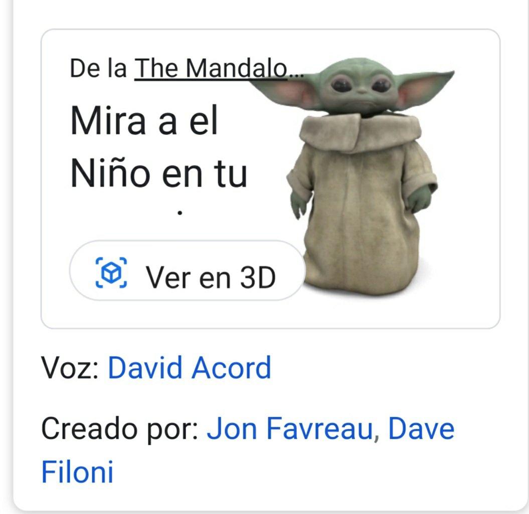 1paso uno .escribe Grogu en el buscador de Google. 2 paso encontrar que ponga 3 d 3 paso pulsar Ver en 3D