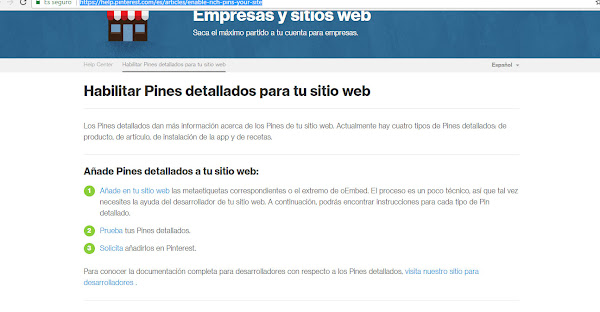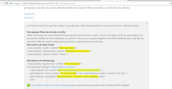2- Luego verificar que tu blog es apto para activar Rich Pin (Es simplemente copiar y pegar el enlace de 1 post de tu blog)