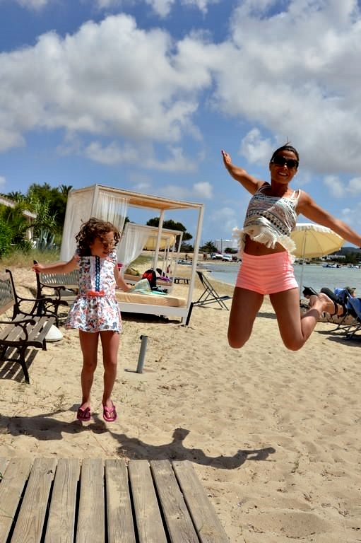 En este hotel nos tenían preparada una cama con vistas a la playa mientras nos llevaban a la pequeña a la zona infantil, donde estaba Eva para entretener y cuidar a los pequeños, así que fue ahí cuando aprovechamos para relajarnos y tomarnos unas ricas bebidas ¡Qué rica la piña colada! vamos todo un lujo