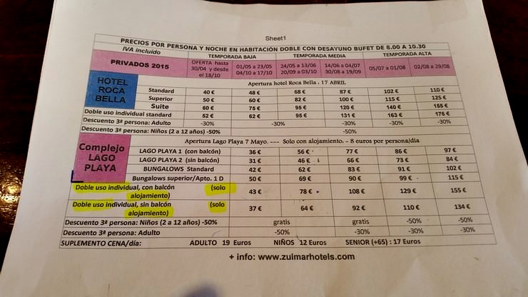 ¿El precio noche? pues este es el hotel donde sería necesario ahorrar un poquito durante el año y permitirte un caprichín sin mucho exceso. Puedes cotillear su página web o echar un vistazo a la foto con los precios que os he puesto mas abajo.