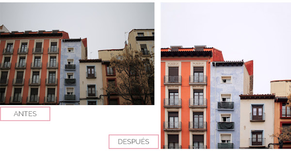 Perspectiva: Utilizando la perspectiva "libre" podremos estirar la imagen por las esquinas. Con esta herramienta la imagen se deforma. Es muy interesante utilizarla en fotos de fachadas, ventanas o murales fotografiados desde abajo. Si comparas la imagen exportada en Lighroom con la obtenida tras este paso notarás un gran cambio.