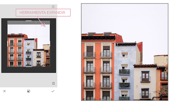 Si la foto no necesitase correcciones de perspectiva ni de manchas, esta sería la imagen definitiva que subiría a Instagram. No obstante, vemos que los edificios están torcidos pese a haber enderezado el horizonte... así que es hora de corregir esta incómoda amorfidad en Snapsseed