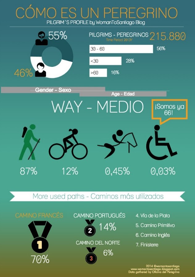 We leave this infographic in your hands that we have maked from Santiago de Compostela Pilgrim Office?s data.