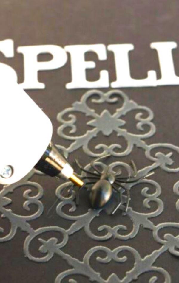Usarás la pistola para poner los relieves en la portada y el lomo del libro. (Puedes poner relieve que quieras; Símbolos de Harry Potter, cicatriz de Harry Potter, lo que quieras…)