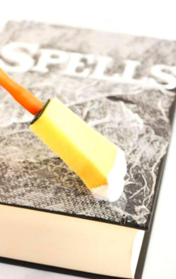El patrón en la parte frontal del libro de hechizos se hizo con pegatinas de 3 d.