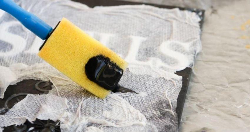 Use un pincel de esponja para aplicar pintura negra a toda la portada, la parte posterior y el lomo del libro.
