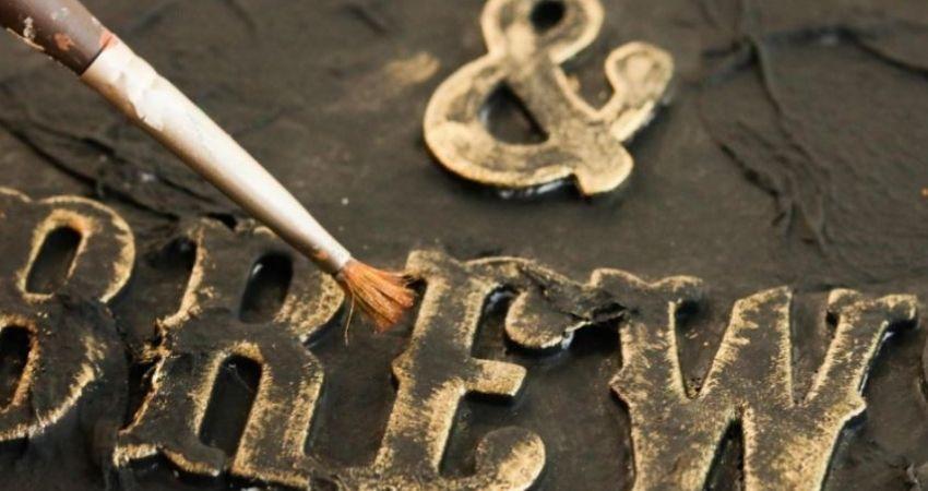 Usa el pincel de cerdas pequeñas para aplicar pintura metálica a las letras y cualquier adorno que se haya aplicado. Intente mezclar dorados y plateados para obtener un aspecto realmente interesante.
