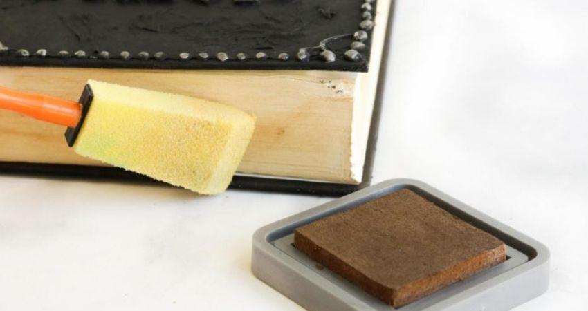 Usa la pintura para manualidades para aplicar tinte a los bordes de las páginas.