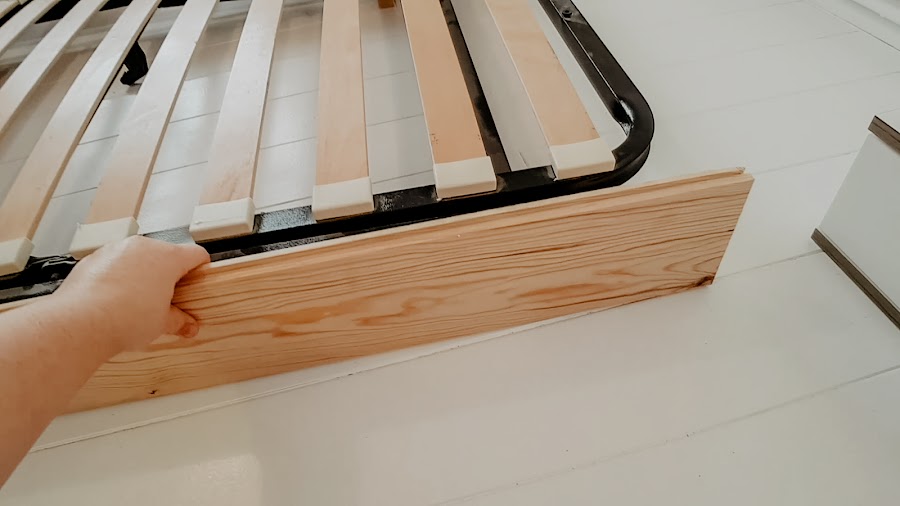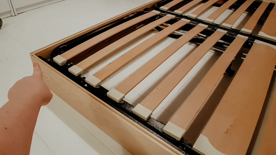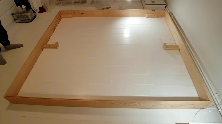 Para que nuestros somiers no descansaran en el suelo, creamos dos pequeños listones que usamos a modo de patas, para que así, tuvieran un mayor apoyo.