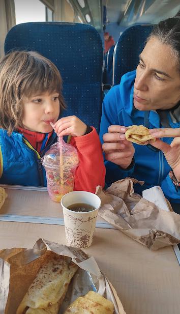 El tren salía a las 10 de la mañana y llegaríamos a Nador a las 16 horas. Desayunamos tranquilamente. Cogimos nuestro petit taxi rojo, compramos el desayuno (otro) para el tren y a disfrutar del paisaje.