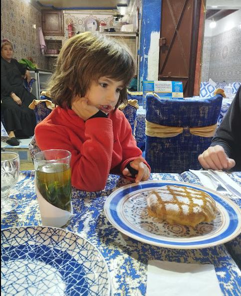 Después de mucho pasear llego la noche y no nos podíamos ir de Fez sin tomarnos otra pastela. ¿De que está hecha una pastela marroquí? La pastela, de origen marroquí, se llama allí pastilla o bastilla (bastil·la بسطيلة) es una clase de hojaldre hecho con massa filo rellena a base de cebolla, carne de pollo, perjil, almendras y muchas especias. Es un curioso plato que mezcla lo dulce y lo salado con el perfume de la canela.