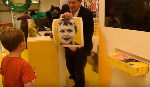 El proceso será bastante sencillo, sólo debes subir al "Mosaic Maker", que es un cruce entre una cabina fotográfica instantánea y una máquina expendedora de Lego, que por el módico precio de unos 110 euros convertirá tu rostro en una imagen pixelada, impresa en un cartel de cinco colores, y te expenderá el conjunto de ladrillos que necesitarás para recrear tu propio rostro!