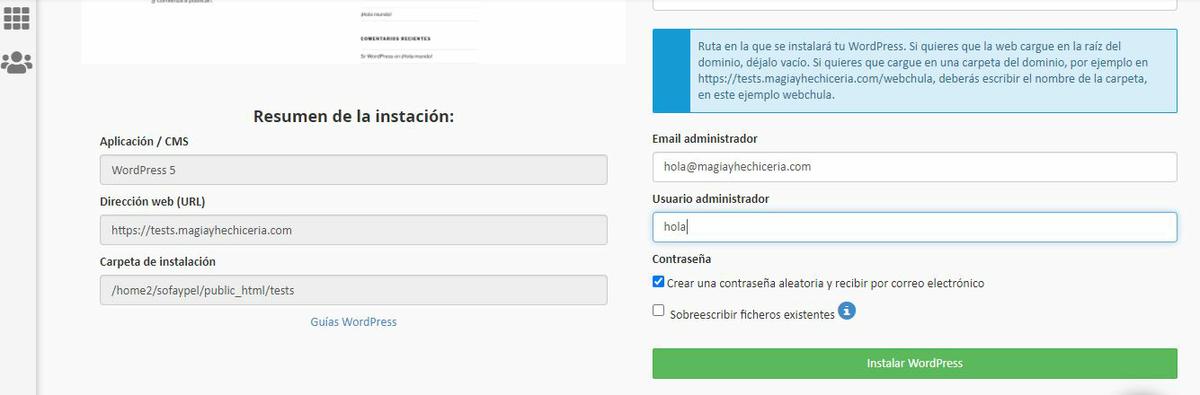 Paso 2: Instalar WordPress en 2 pasos
