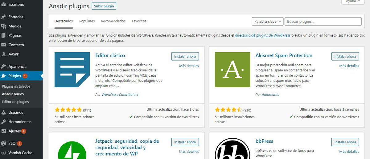 Fácil. En tu panel de la izquierda vas a: Plugins>Añadir nuevo y pones los que te he recomendado. Instalar ahora>activar. ¡Y ya está!Paso 5: Comenzar a escribir