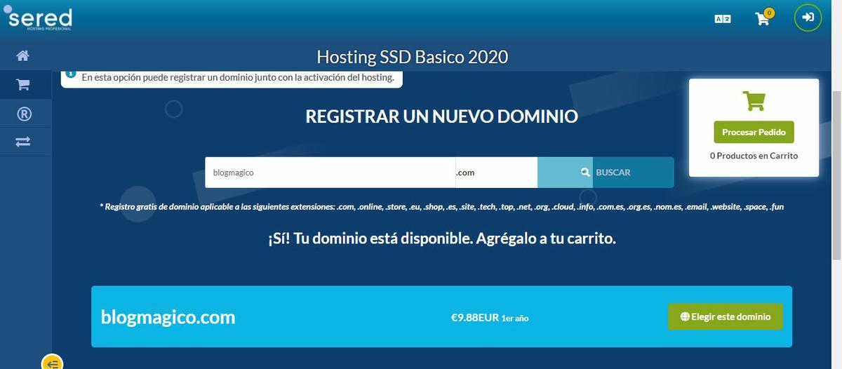 Eliges el nombre de tu dominio y si está disponible le das a procesar pedido. ¡Guíate siempre por el color verde!Paso 4