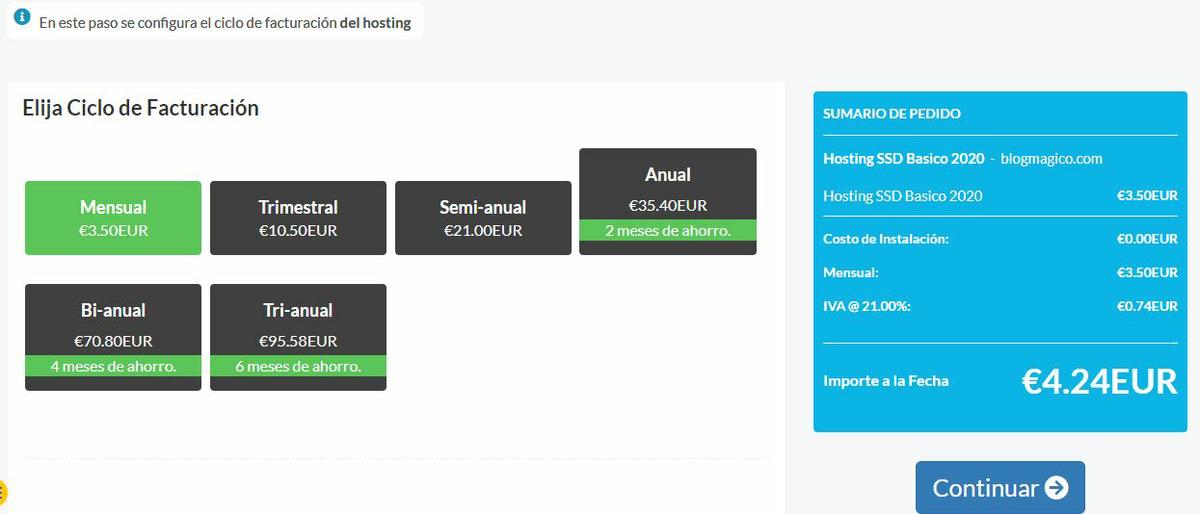 Eliges tu periodo de facturación. Como puedes ver hay diferentes precios, ¿Mi consejo? Anual.Paso 5