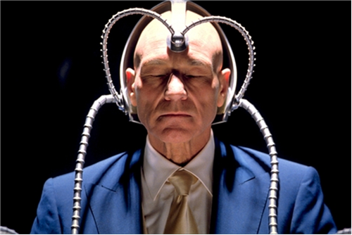 Cerebro se inicia con un intenso movimiento de violín junto a un interesante efecto ( muy parecido a unas voces, las cuales son las mismas que el profesor escucha en su mente) el sonido se transforma poco a poco en un ritmo electrónico que despues se fusiona con una melodia de largo compás, que describe perfectamente el proceso que la máquina utiliza para poder encontrar mutantes.