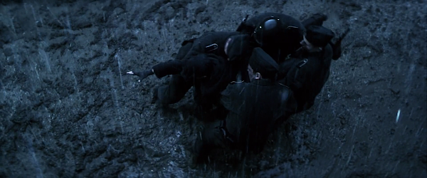 La melodia repite una y otra vez ese giro continuo , cuando piensas que descansa el compositor consigue engañarte voviendo a un contaataque continuo de majestuosas melodias ( como una ida y venida de un intenso combate) para finalizar con la inclusion del excelente tema principal el cual indica la llegada de los héroes al caotico escenario.