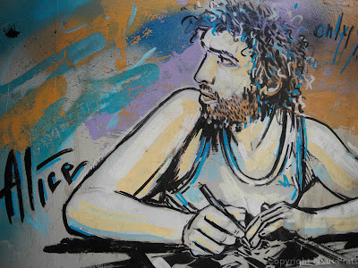 Después están los artistas que se dedican a acondicionar las persianas de los comercios con el tema que les encargan los propietarios del local,pero estos no los he fotografiado, porque se considera un trabajo para subsistir, no street art.