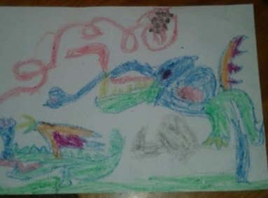 Os voy a dejar un ejemplo, es un dibujo de un niño pequeño que inventó un animal, el dragofantedrilo, un ser con partes de dragón, elefante y cocodrilo: