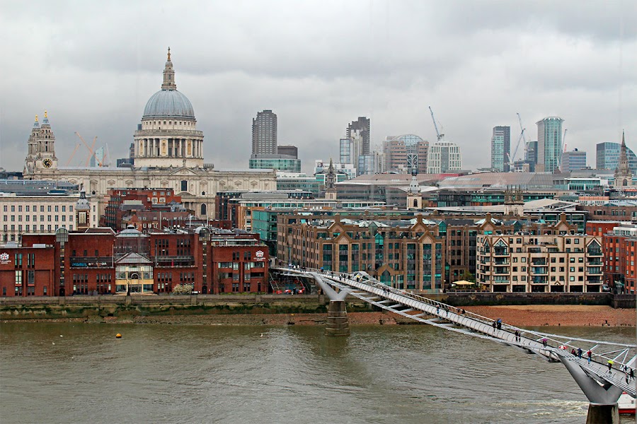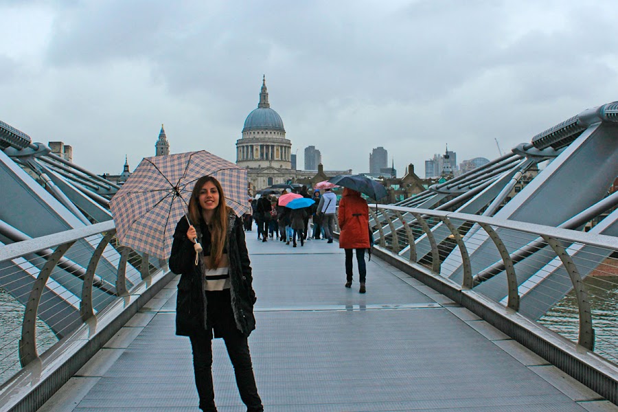 Salimos de allí y cuando cruzamos el Millenium Bridge calló un diluvio universal. Yo pensaba que el cielo nos estaba exigiendo que nos fuésemos a casa. Pero al llegar a St Pauls Cathedral la lluvia se detuvo por completo. De repente nuestro cansancio desapareció y nuestro ánimo se vino arriba y empezaron las risas y las chorradas. Qué bien... el cielo estaba muy oscuro y el suelo mojado pero ¡éramos felices! por fin, a media tarde había parado de llover!!
