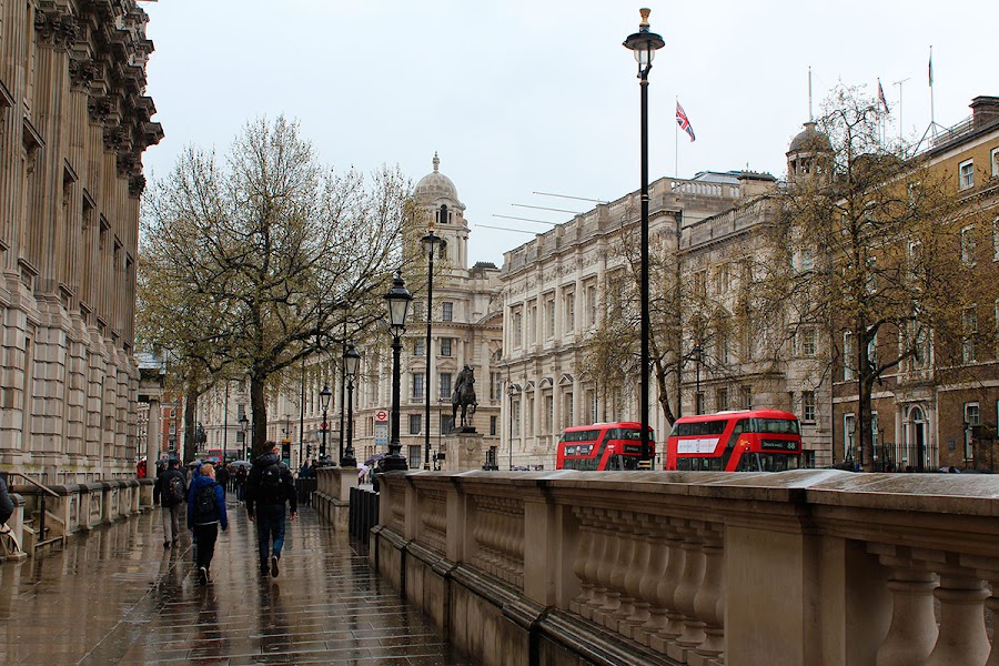 Tras casi 4 horas en el museo salimos a buscar un lugar donde sentarnos a comer los sándwiches que preparamos pero sorpresa, no paraba de llover. Empezamos a andar en busca de algún lugar cubierto donde poder sentarnos porque estábamos agotados! Un pequeño porche de Palace of Whitehall donde tuvimos que organizarnos un poco para caber todos los que nos refugiábamos de la lluvia y allí nos comimos los sándwiches mientras veíamos llover y descansábamos las piernas. Yo no podía con mi alma.