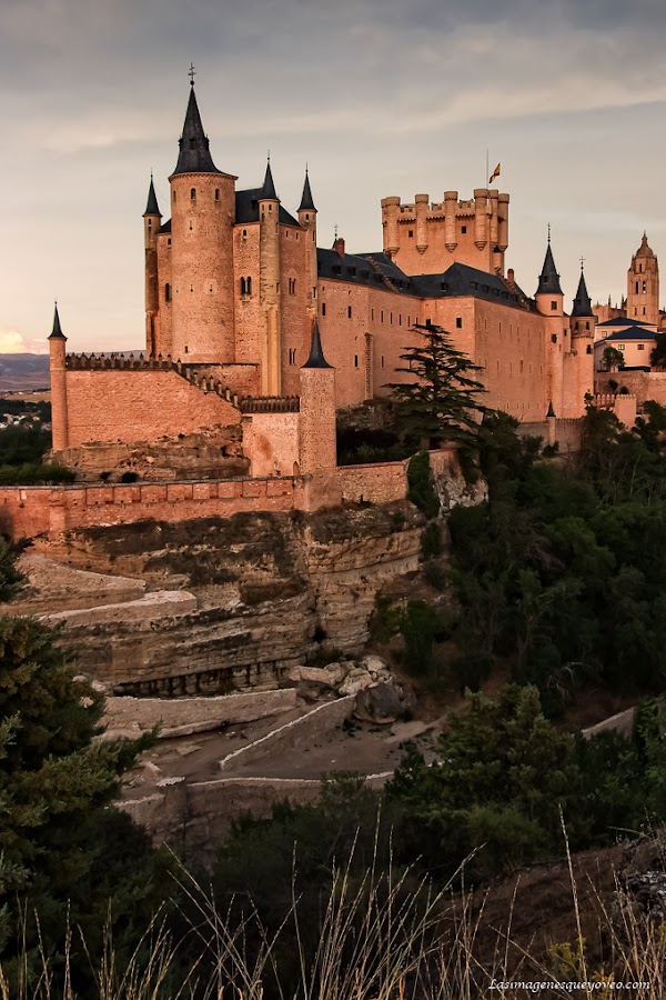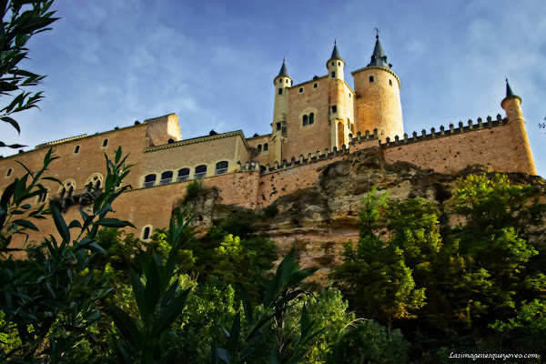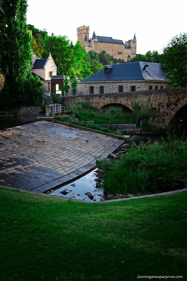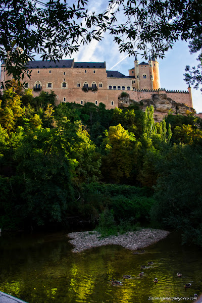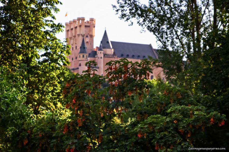 Si avanzas por la pradera de césped encuentras primero el frondoso Paseo del Eresma que continua en el Paseo la Alameda del Parral, a los cuales dedicaré el siguiente post. Avanzando por esta hermosa senda y, levantando la vista a cada rato, vas viendo espléndidas vistas del Alcázar a vista de hormiga.
