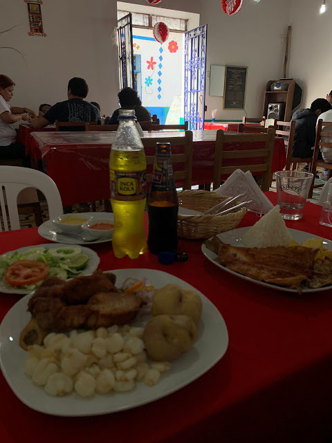Almuerzo típico con las infaltables bebidas Inca kola y cerveza Cusqueña (No dejes de probar la negra)