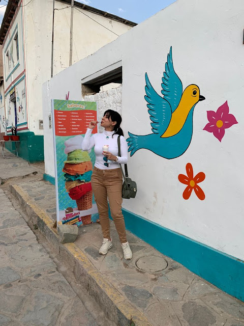 Este pueblito cuenta con la reputación de ser el retablo mas grande del mundo por el arte colorido de sus fachadas desde que se dice que ingresó al libro récord Guinness en el año 2007.