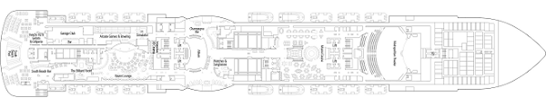 11. Planos de puentes y cubiertas: en las webs oficiales de los cruceros puedes encontrar los planos de las cubiertas de cada buque para ayudarte a elegir tu camarote. Por ejemplo, los pasillos también son larguísimos y escoger los camarotes cerca de los ascensores también es buena idea.