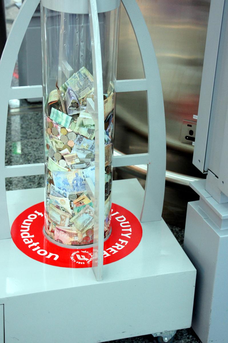 Si vas a otro país extranjero, cuando vuelvas gasta todo tu dinero en los mendigos o en la caridad, en los aeropuertos suelen tener unas grandes peceras para meter las monedas y billetes que no has podido usar