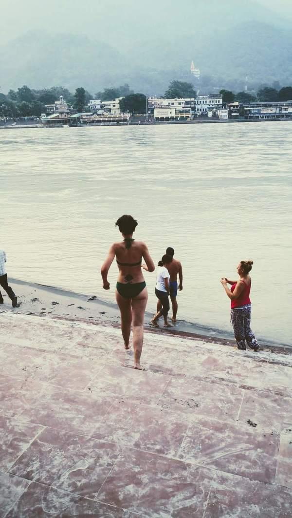 En el río Ganges lo normal es que os bañéis vestidas como el resto de las indias. Yo, como fui muy temprano, a las 6 de la mañana, lo hice en bikini pero, en cuanto empezó a llegar gente, me salí y me vestí, para evitar miradas indiscretas o alguna situación incómoda.