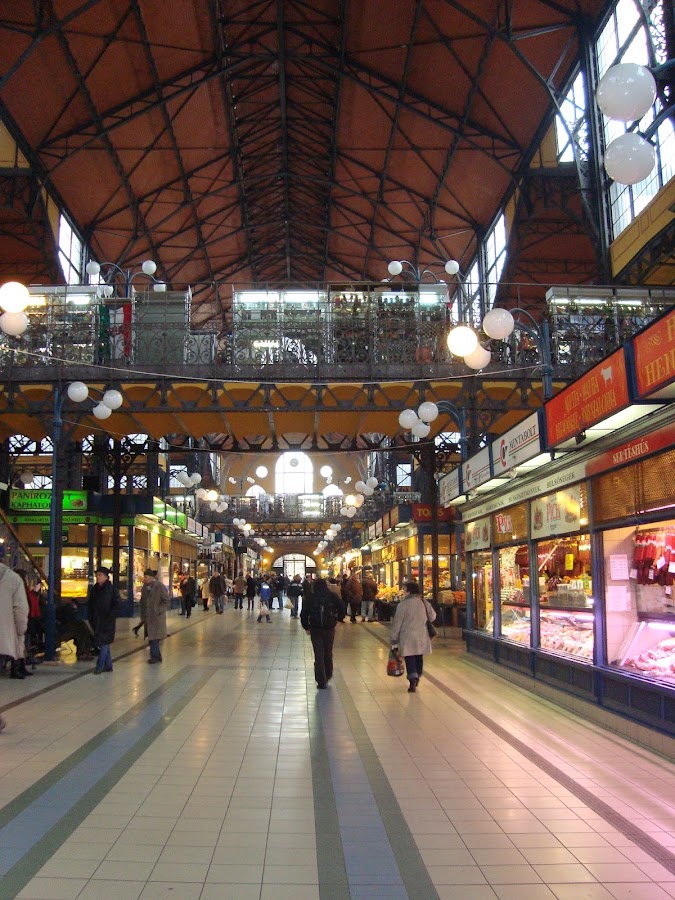 Hacer una excursión al Mercado Central siempre resulta ser muy fascinante a los visitantes curiosos. Nada más entrar por la puerta principal el viajero ya ni siquiera sabe qué dirección tomar porque los puestos coloridos y los artículos presentados con gusto atraen la atención desde el primer momento. Si logramos resistir la tentación de los primeros momentos y decidimos recorrer todo el edificio merece la pena empezar el recorrido en el sótano donde podemos degustar los encurtidos que son típicos en la cocina húngara y también podemos comprar especias orientales. Junto a los puestos pequeños encontramos una cafetería para desayunar, un supermercado. Subiendo desde la planta baja nos sumergimos en la vida bulliciosa del mercado y aquí, zigzagueando entre la inmensidad de puestos, podemos recrear la vista y comprar tanto verduras y frutas frescas como carnes y otros productos. La mejor manera de hacerlo es ir comiendo una de esas sabrosas piezas de bollería que se llaman "media luna". Se recomienda probar la que lleva queso ya que siempre están frescas y recién hechas.