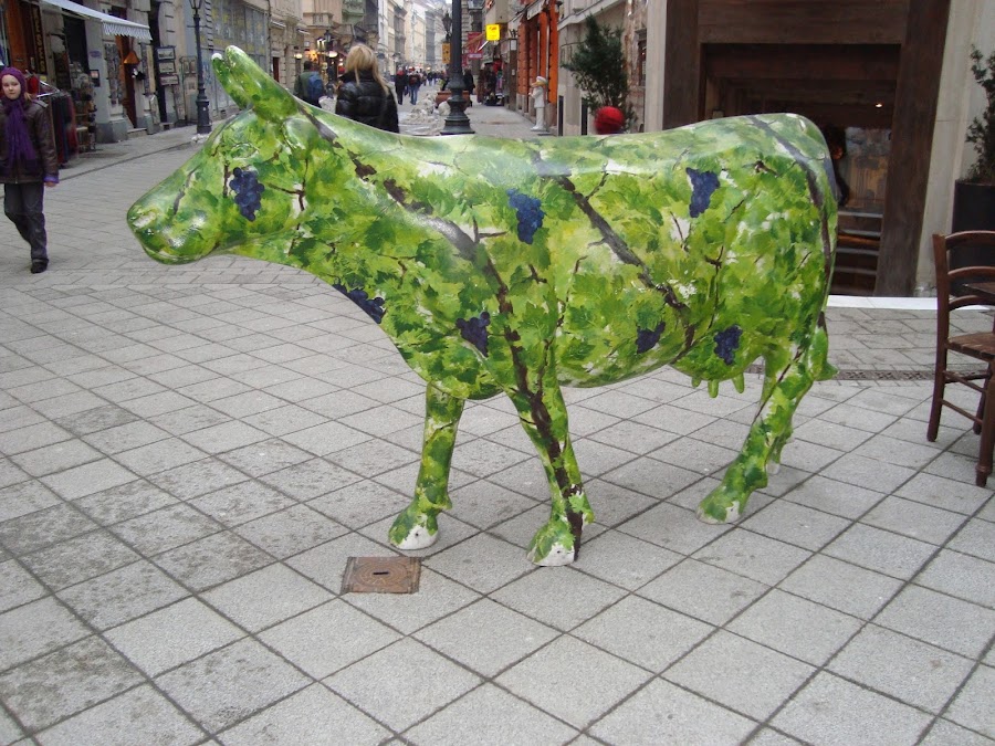 Y se nos abrió el apetito, así que fuimos directamente a comer a Vaci Utca. Por el camino os encontramos esta vaca, que formó parte del Cow Parade.
