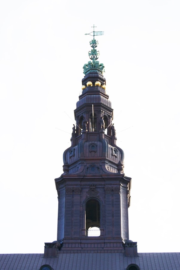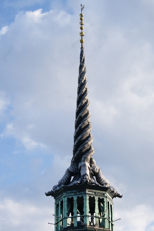 Está coronada por una cúpula formada por las colas de cuatro dragones enroscadas entre sí. Es, quizás, el edificio más curioso de Slotsholmen.