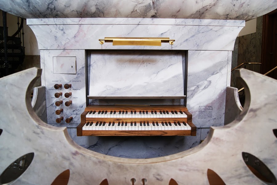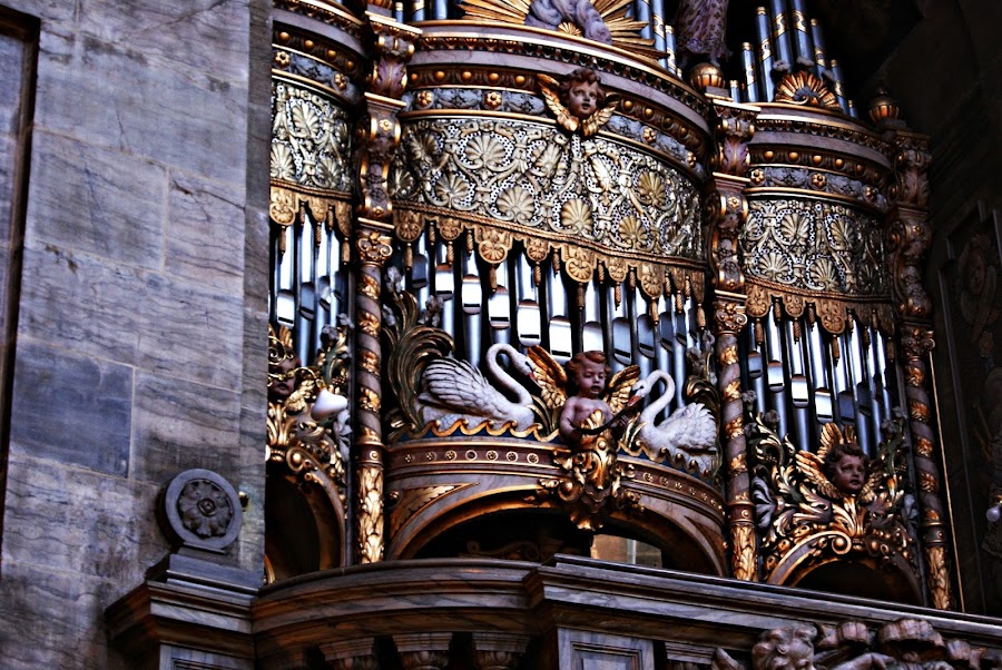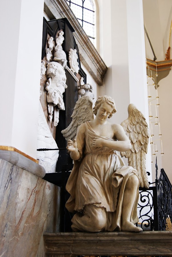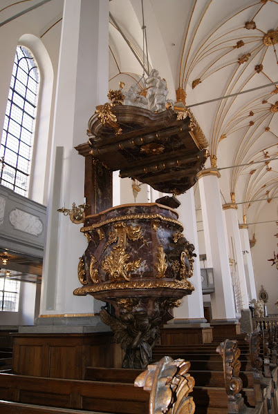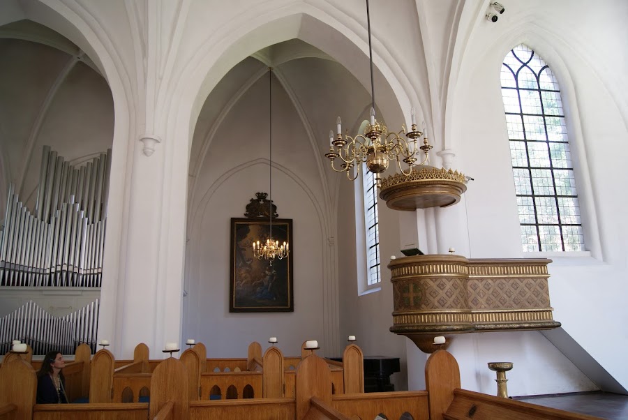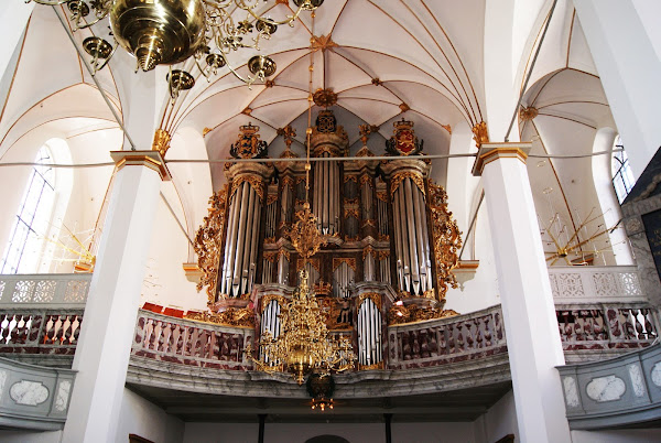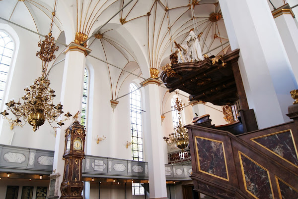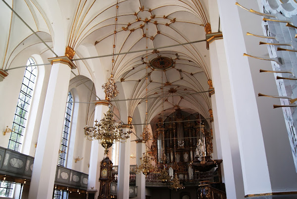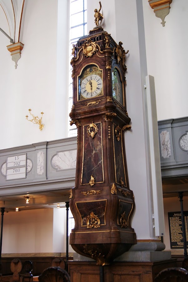 Frente al púlpito, en la nave central, se ve un insólito reloj, obra del siglo XVIII del artista danés Peter Michael Abel. Cierra la nave, con grandes lámparas de finales del siglo XVIII, el imponente órgano de L. D. Kastens, de 1731, totalmente renovado en 1956, dominado por los escudos reales.