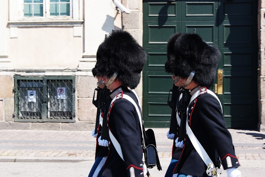 En cuanto al cambio de guardia, debéis saber que los soldados salen a las 11:30 del Castillo de Rosenborg. Desde allí se dirigen muy solemnes a Amalienborg, donde llegan media hora después para dar descanso a sus compañeros.