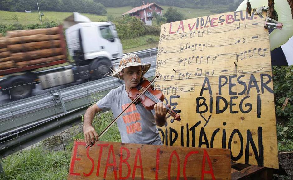 Maravilla de artículo que me he encontrado hoy. Os pongo en situación, llevo bastantes meses yendo a Donosti con frecuencia y cada vez que pasaba por la autopista había (cómo diría Ignatius) “Un señor mayor ahí con una txirula y un gorro protestando en medio de la AP8 bailando ahí”. Cómo las fuerzas de la naturaleza me han dado el poder de no poder obviar estas cosas, llevo todo el verano haciendo elucubraciones. Hasta que me he encontrado este artículo paradójico sobre este señor que vive en un baserri al lado de la autopista y no le ponen paneles anti ruido. Resulta que la diputación de Gipuzkoa le podría poner una multa de hasta 8.000 euros por ponerse a protestar en medio de la AP8 despistando a los conductores.