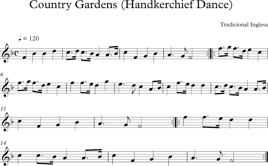 Country Gadens. Partitura para flauta dulce. Canción Tradicional Inglesa. La englobaremos dentro del nivel avanzado.