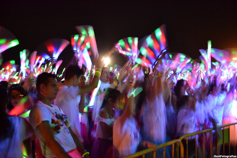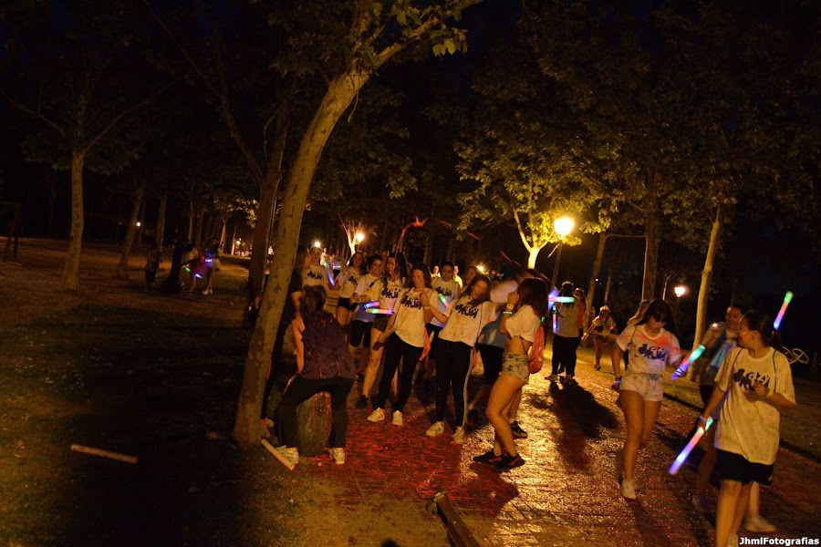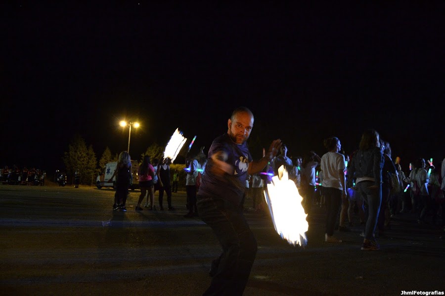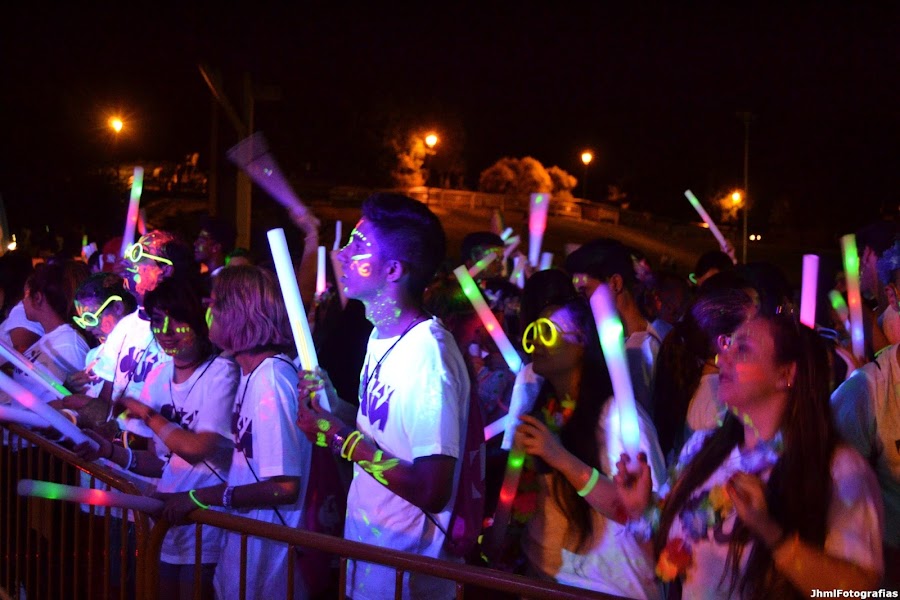 A las 22:00 horas arrancaba la carrera desde el Recinto Ferial pasando por varias zonas de Torrejón como la Plaza de España donde había varios puntos de animación con malabares con fuego, música en directo y monitores rociándoles de pintura UV.