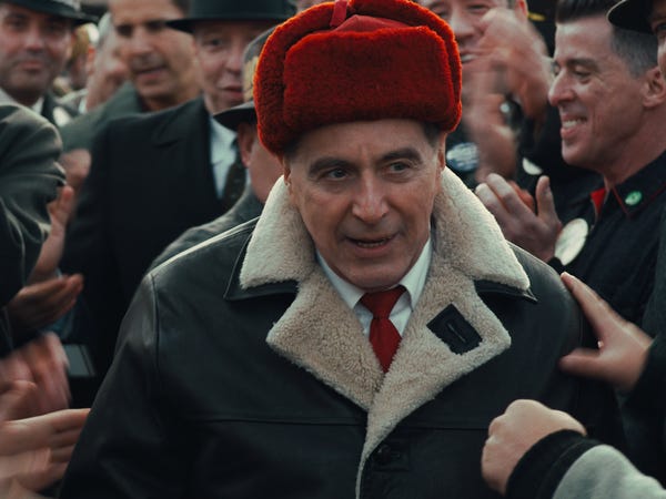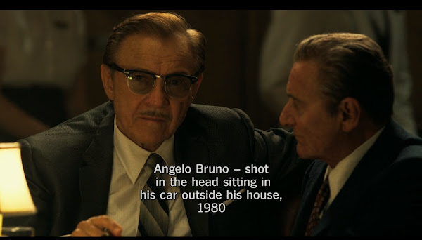 La película tiene una extraña pero interesante línea temporal. Primeramente vemos a Frank Sheeran y a Russell Bufalino (Joe Pesci) junto a sus respectivas esposas, empezando un viaje a Detroit, que los conduce a la boda de la hija del primo de Bufalino. Es un evento secundario, ya que el viaje se compone de una seguidilla de encargos.