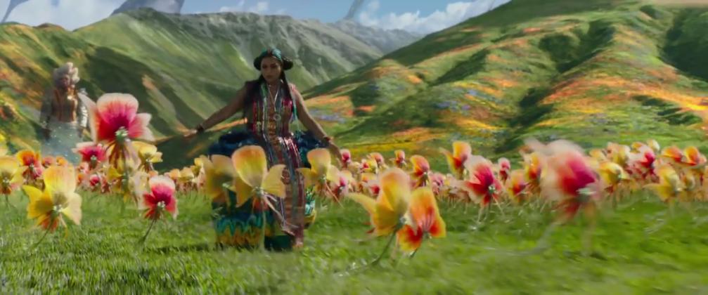 Los “seres celestiales” son mujeres raras sin ser fascinantes. De nada sirve el elaborado e imaginativo vestuario de Paco Delgado. Ellas apenas ayudan, y no se les da suficiente tiempo en pantalla teniendo en cuenta el peso argumental que supuestamente tienen. Tampoco ayuda el hecho de que Reese Witherspoon, Mindy Kaling y Oprah Winfrey actúen como si estuvieran puestas de peyote. Tras esa sarta de purpurina, filosofía barata de autoayuda y citas de Shakespeare solo hay personajes planos sin gancho.