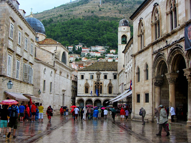 Nosotros pasamos cuatro noches en esta ciudad, aunque uno de los días lo dedicamos a hacer una excursión a Montenegro (que ya contaré). Suelen ofrecer también la posibilidad de viajar a alguna de las múltiples islas cercanas, especialmente a Korčula, o a interesantes poblaciones cercanas como Ston o Cavtat (que no se pronuncia “Kavtat” como todos creíamos, sino “Tsavtat”, ¡qué difícil es, para los de habla hispana, acertar con la pronunciación croata, jajaja). Pero nosotros preferimos quedarnos un día más disfrutando de Dubrovnik. Sobre todo, porque el primer día tuvimos que huir hacia el hotel como alma que lleva el diablo: ya os comenté que nos quedaba otro día de lluvia en el viaje, ¡y qué lluvia!.